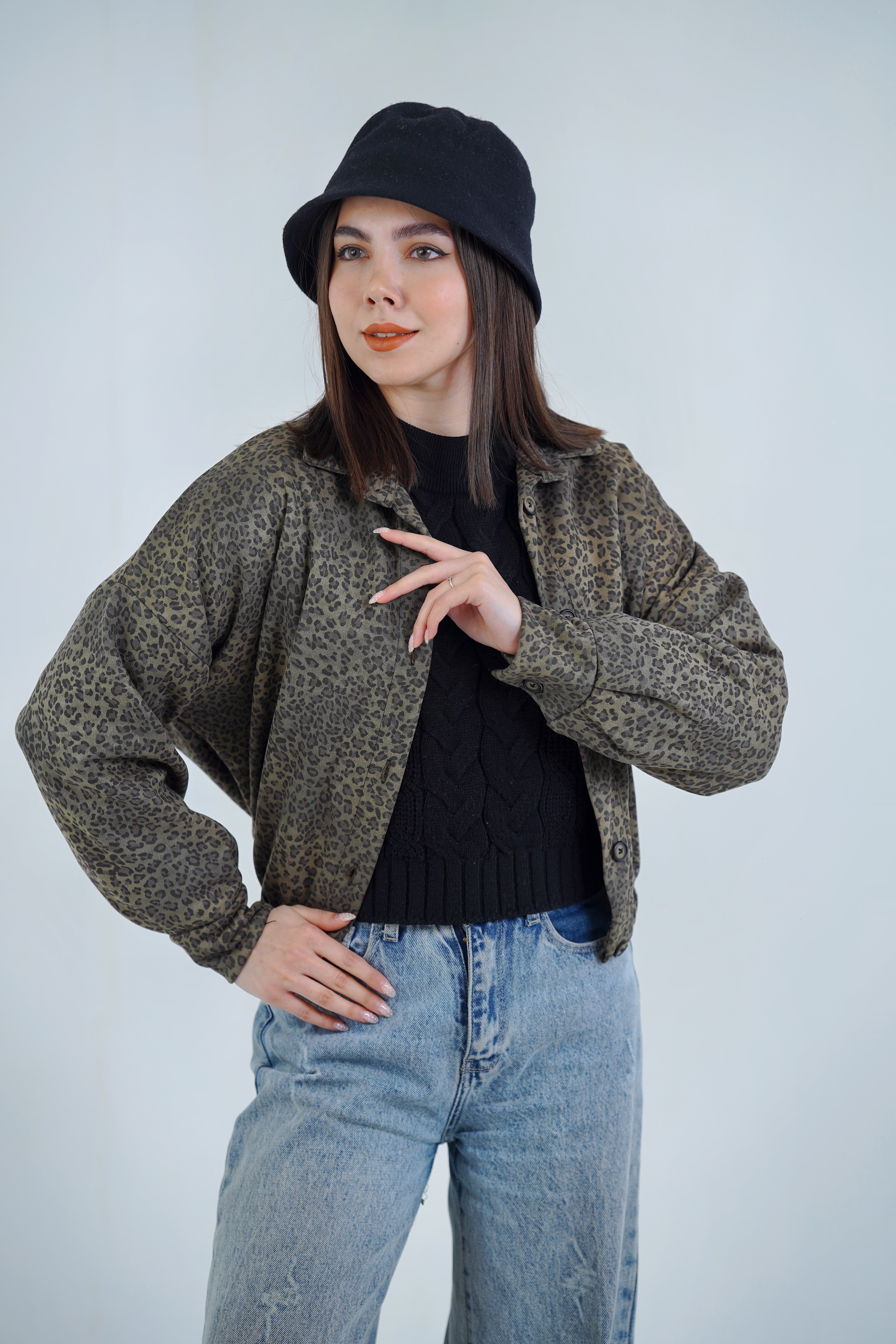 بامبرجکت زنانه هومانی طرح پلنگی از جنس پارچه سوئیت