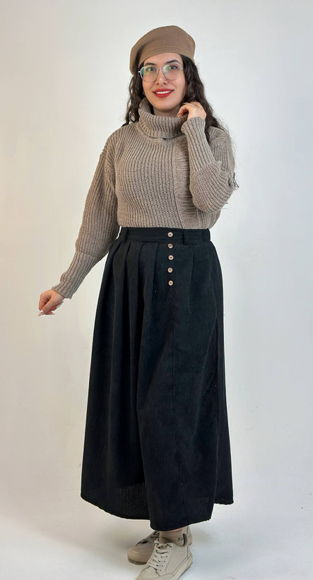 دامن زنانه مدل سه دکمه مخمل کبریتی قد ۸۷ فری سایز ۳۶ تا ۴۶