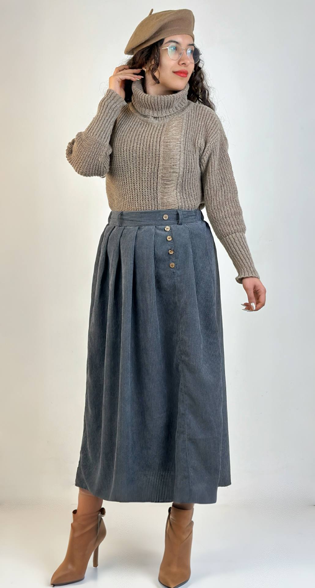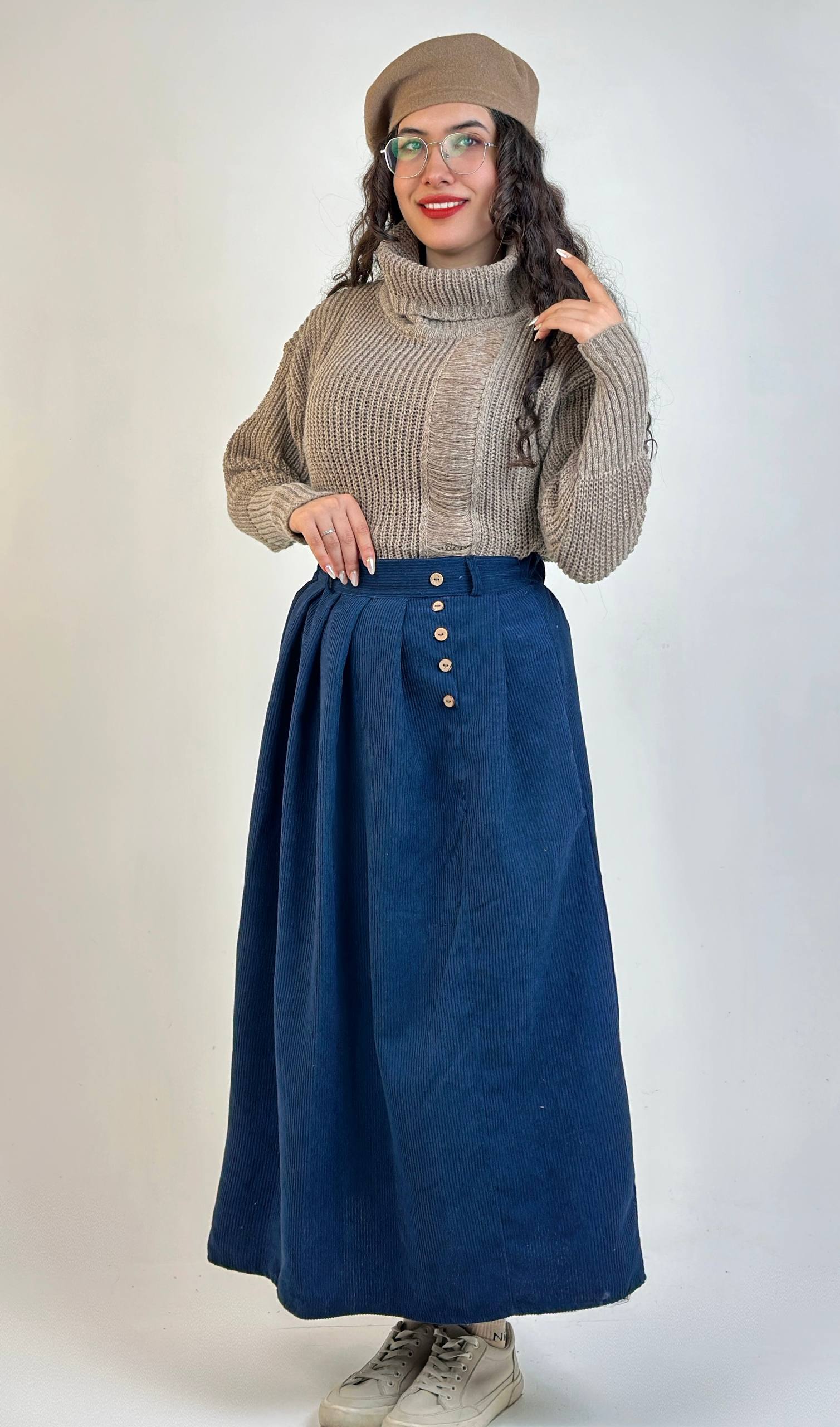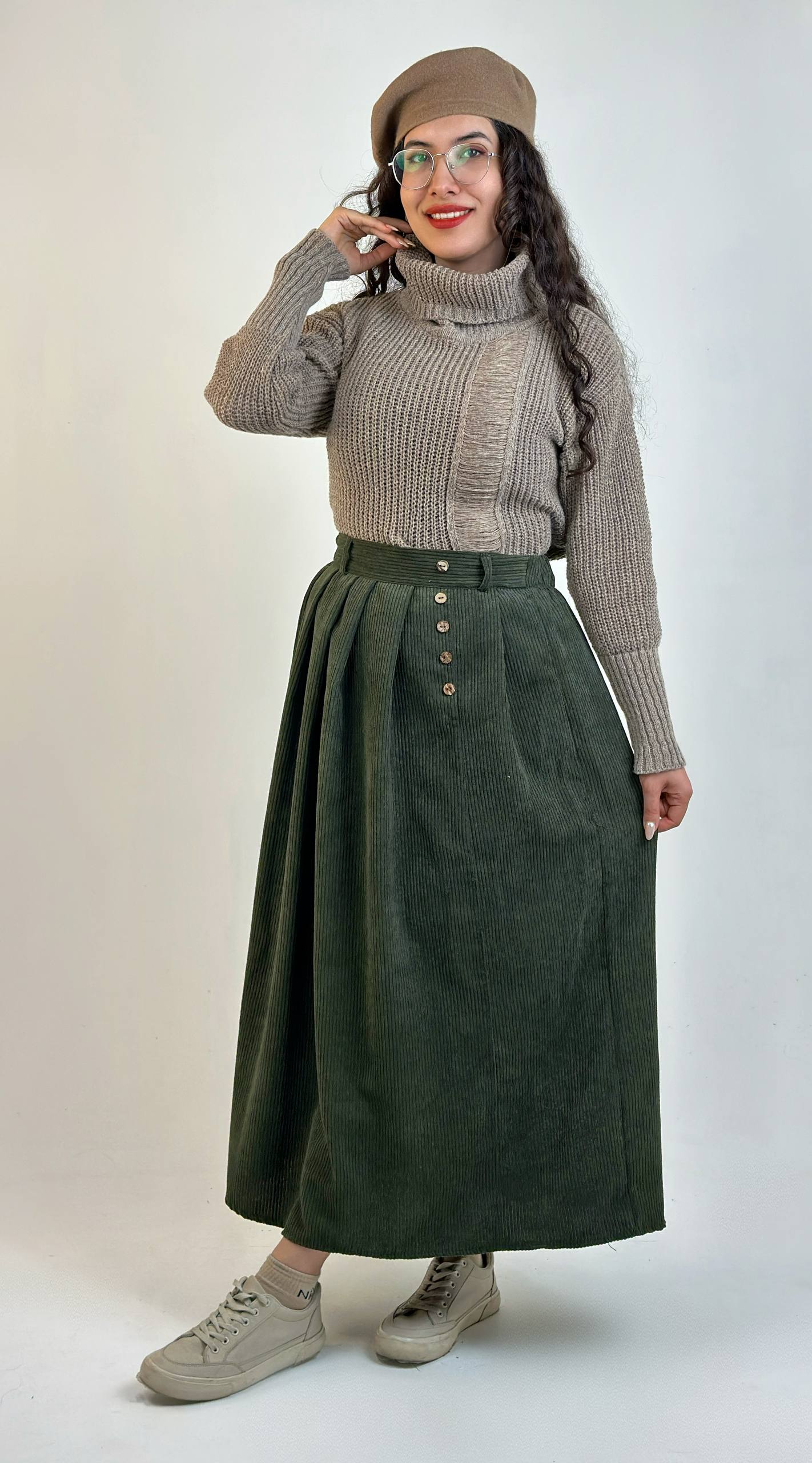 دامن زنانه مدل سه دکمه مخمل کبریتی قد ۸۷ فری سایز ۳۶ تا ۴۶