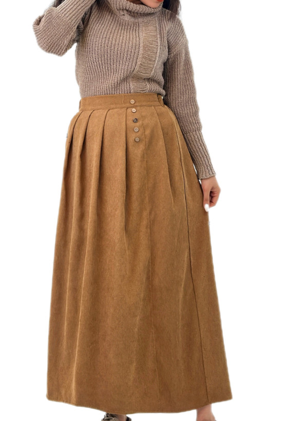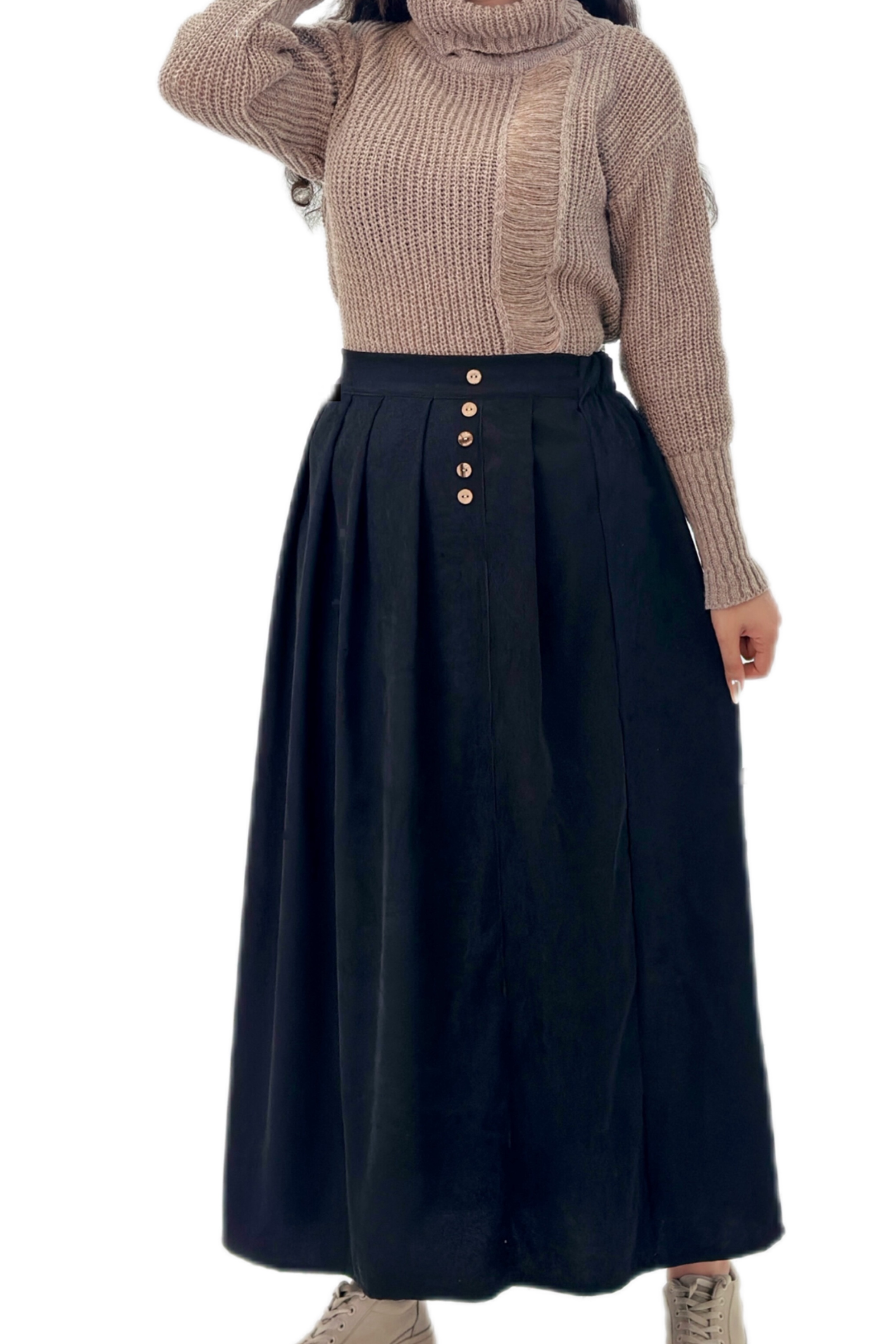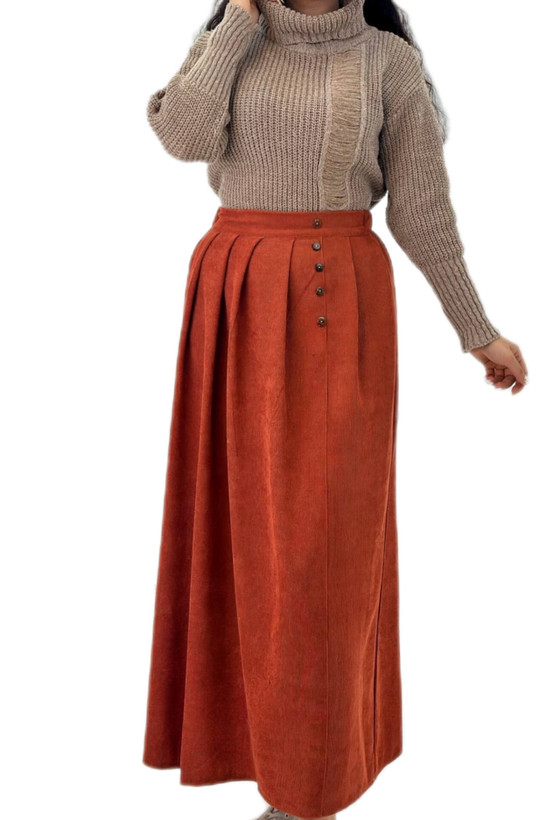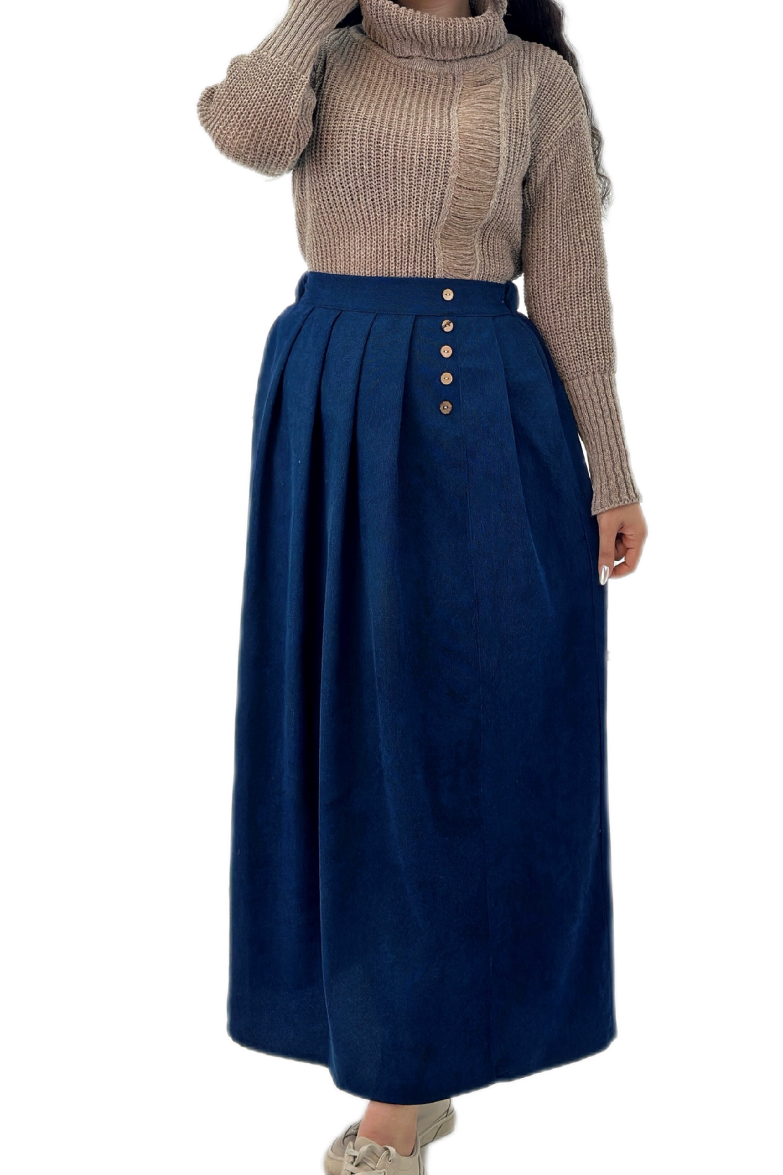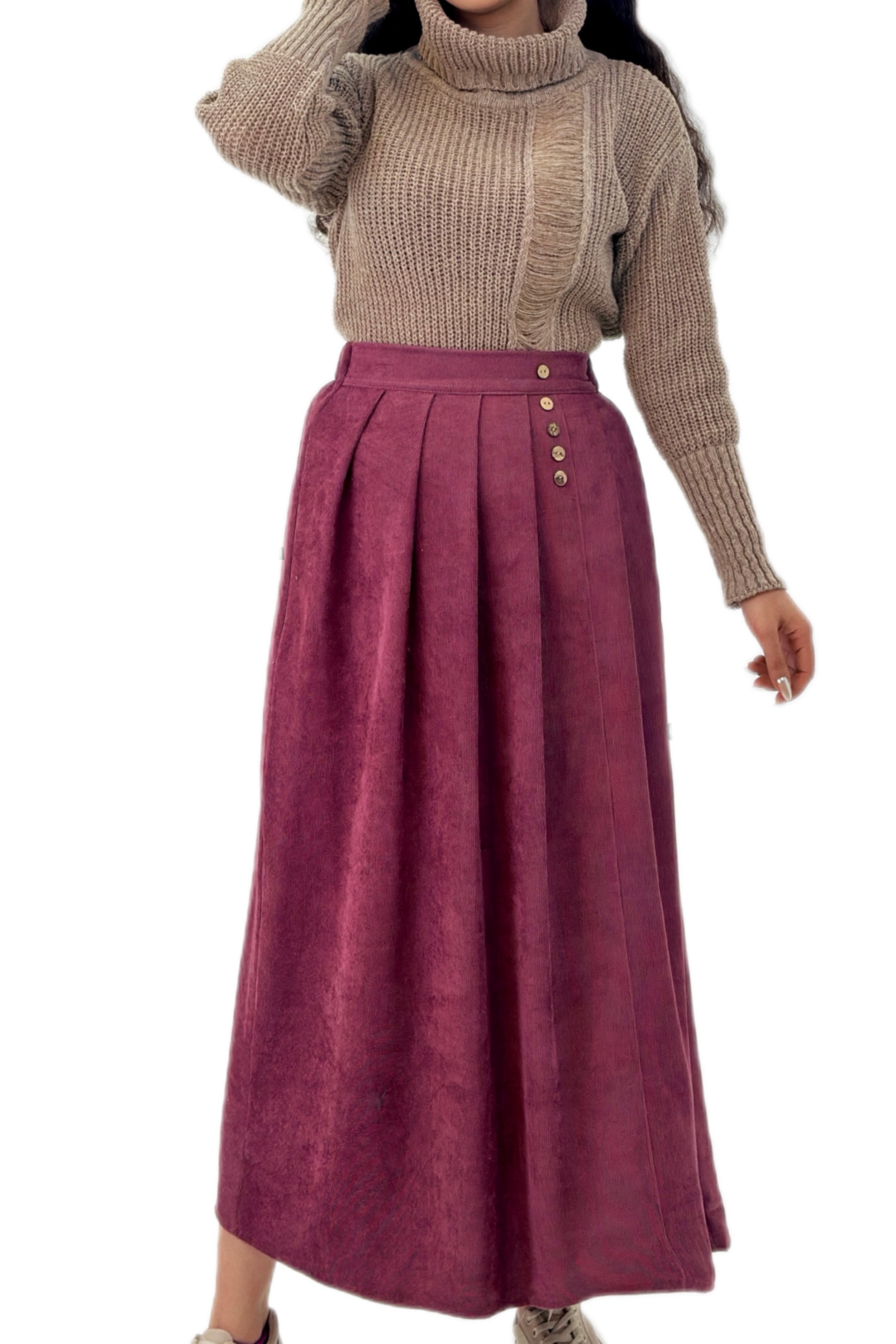 دامن زنانه مدل سه دکمه با جنس مخمل کبریتی، طراحی شیک و فیت آزاد، انتخابی مناسب برای استایل روزمره و نیمهرسمی است. این دامن با قد ۸۷ سانتیمتر و فری سایز مناسب برای سایزهای ۳۶ تا ۴۶، پوشش راحت و ظاهری جذاب ارائه میدهد. طراحی سه دکمه جلو، جلوهای کلاسیک و خاص به دامن میبخشد و به راحتی با انواع شومیز و بلوز ست میشود.
