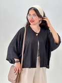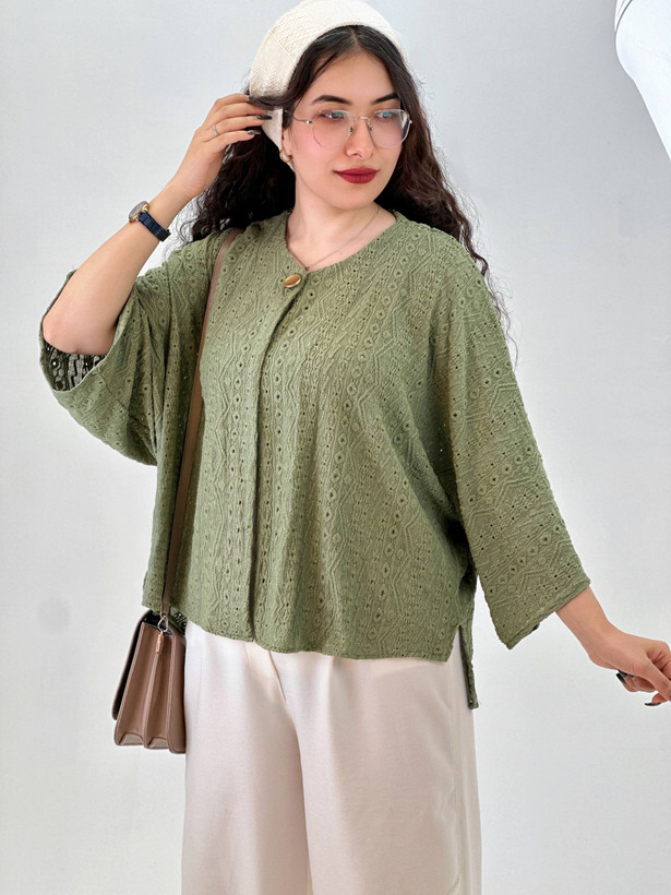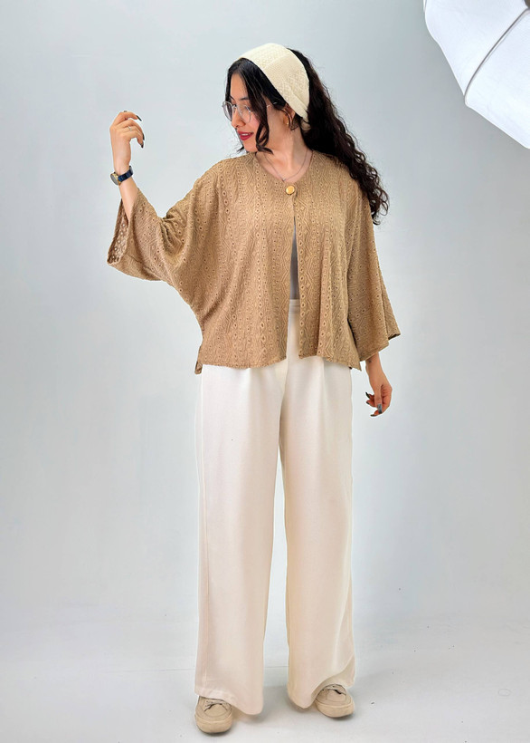 پانچ زنانه مراکشی تکدکمه از جنس پارچه مراکشی، با طراحی آزاد و راحت، انتخابی عالی برای استایلهای روزمره و نیمهرسمی است. این پانچ با قد ۵۸ سانتیمتر و فری سایز مناسب برای ۳۶ تا ۵۰، بهخوبی روی بدن مینشیند و ظاهری شیک و خاص ایجاد میکند.