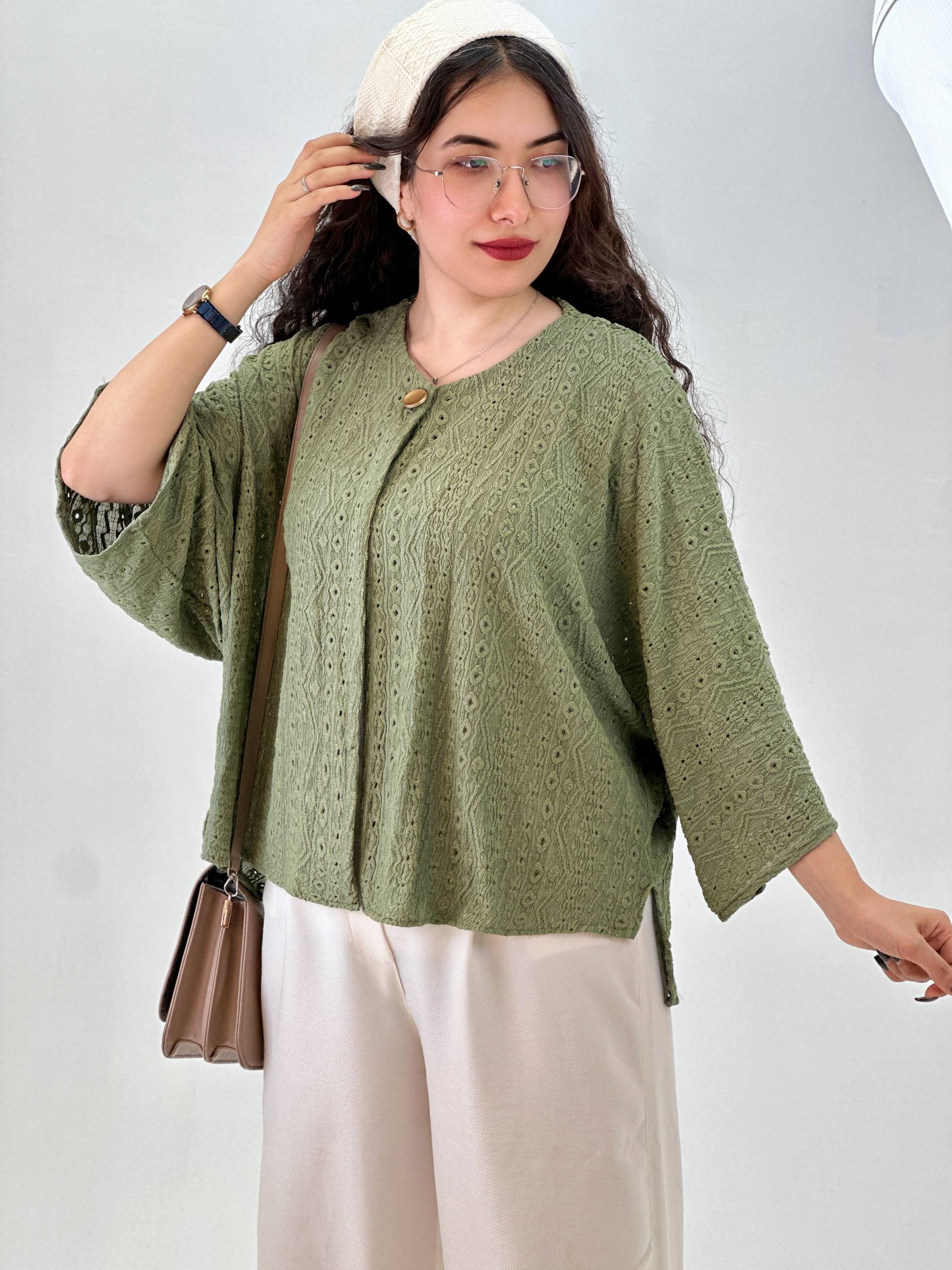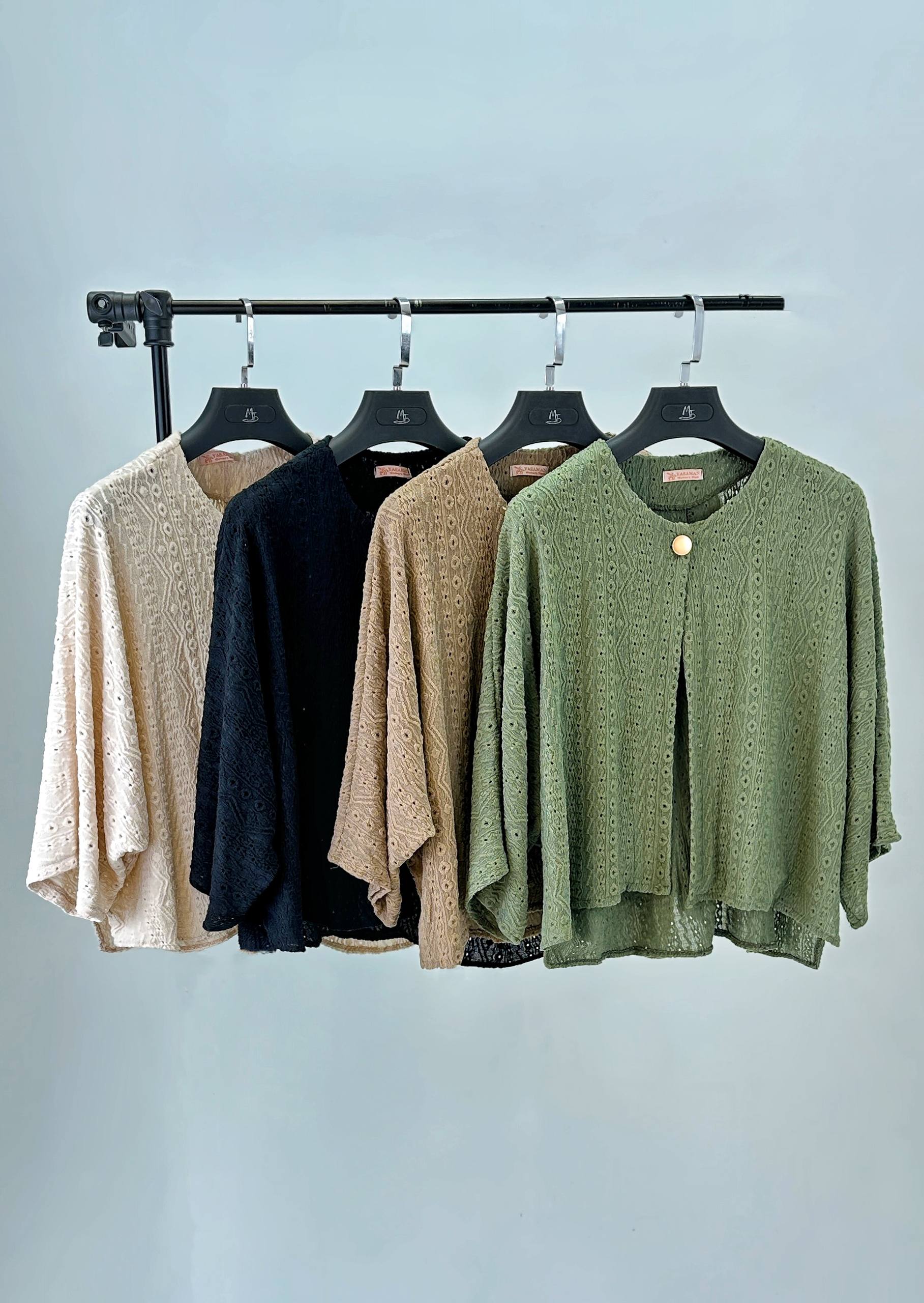 وجود یک دکمه در قسمت جلو، ترکیبی از سادگی و ظرافت را به طراحی آن بخشیده است. رنگبندی متنوع شامل سبز، کرم، شیری و مشکی باعث میشود بهراحتی بتوانید آن را با آیتمهای مختلف ست کنید.