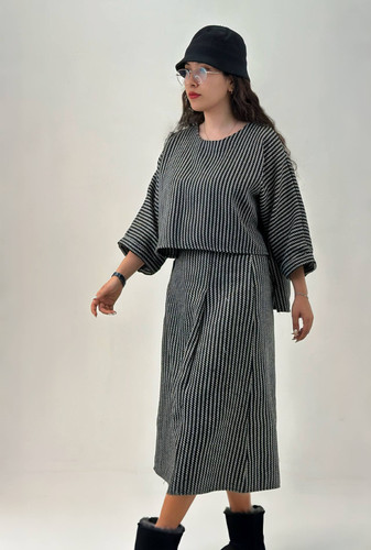 ست کراپ و دامن زنانه گندمی جنس کشمیر فری سایز تا ۴۴