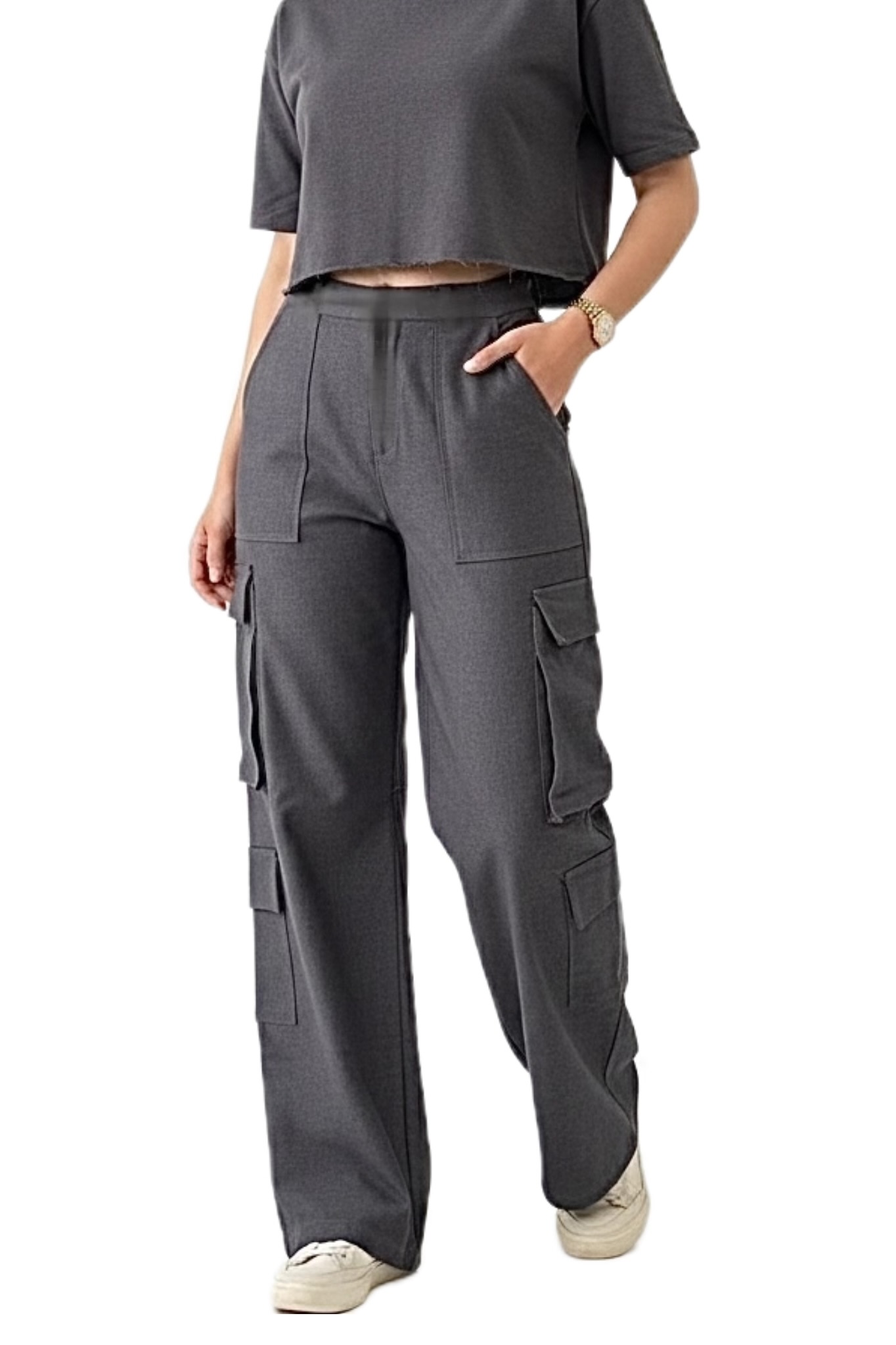 شلوار کارگو زنانه هومانی از جنس پارچه نیل کاملا کشی